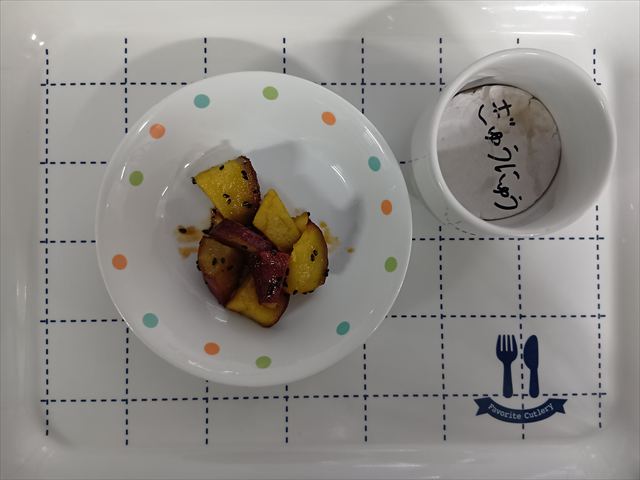 おやつ 大学芋 牛乳※当園はサイクルメニューとなりますので30日もこちらを参照下さい