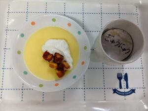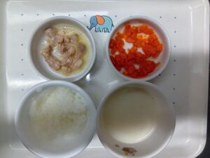 お粥 鶏肉のとろみ煮 人参のだし煮 豆乳スープ