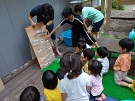 2,3,4,5歳児で水遊びをしました。ペットボトルを積み重ねて水が落ちていく様子を見ました。色水を使って行うと…どんどん色が薄くなっている!さすが年長さん!色の変化にいち早く気づき声をあげてくれました。他のお友だちも気づき夢中で見ていました。自由時間になると他のお子さまも水を流して観察していました♪