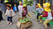 園庭の剪定をしていると、パラパラと落ちてきた葉っぱたちが、園庭に残っていました。すると、お子さまたちが葉っぱを集めてくれたのです。「園庭の木がなくなったね~」とさっぱりとした園庭になり、より一層気持ちよく遊べるようになり、嬉しそうでした。拾った葉っぱを使ってごっこ遊び、ほうきのようにして掃除の真似。それぞれが楽しそうに遊んでいました。