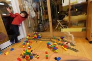 ブロックを使って大きな、大きな町をつくりました。そこには建物や線路、様々な街並みをイメージしてお子さまが作り上げています。お友達とも「ここに○○を作ろう!!」と相談し、試行錯誤しながら作り上げました。大作と一緒に最後は写真を撮りました。