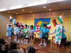 プライマリークラスの成長を祝う会がありました。4,5歳児は、あでやかな着物を身にまとい、おひなさまを演じたり、子どもたちの興味関心から、国旗チーム、ダンスチームに分かれ、元気よく発表しました。また3歳児は可愛い動物になりきり「どうぞのいす」の劇遊びを発表しました。お子さま一人ひとりが、日々の保育園で楽しむ姿をお父さんお母さんに見て頂く機会となりました。保護者の皆様、応援ありがとうございました。