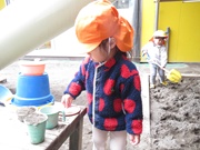 お子さまたちの希望で園庭で遊ぶことに!砂場でおもちゃを使いながらお料理ごっこをしたり、シャベルで豪快に掘って遊んだりとやりたい遊びを楽しむことが出来ました。
