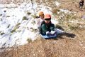 今日は2歳児のお子さまと3,4歳児のお子さまで多摩川のほうまで散歩にいきました。そこまでマラソンをすると、その先のところでそりすべりをしました。スピードもある中、まえの人につかまりうまく滑るお子さまたち。「もういっかいやろう」と何度も何度も滑り楽しみました。