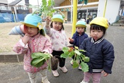 にこにこ広場にできた、小松菜、かぶ、にんじんなど収穫体験に参加しました。