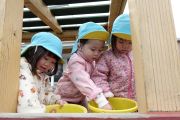 たんぽぽクラスのお子さまはお料理をして楽しみました。なに作っているの?と聞くと「ブルーベリー!」とブルーベリー作りを行っていました。バケツの中には泥が入っていてしっかり再現していました♪
