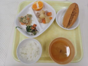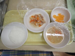 5倍がゆ 肉じゃが さつま芋の味噌汁 みかん